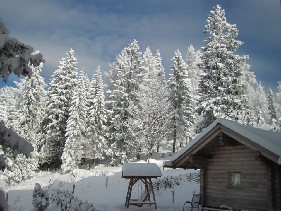 Blick vom Wellnessbereich ins Aussengelände