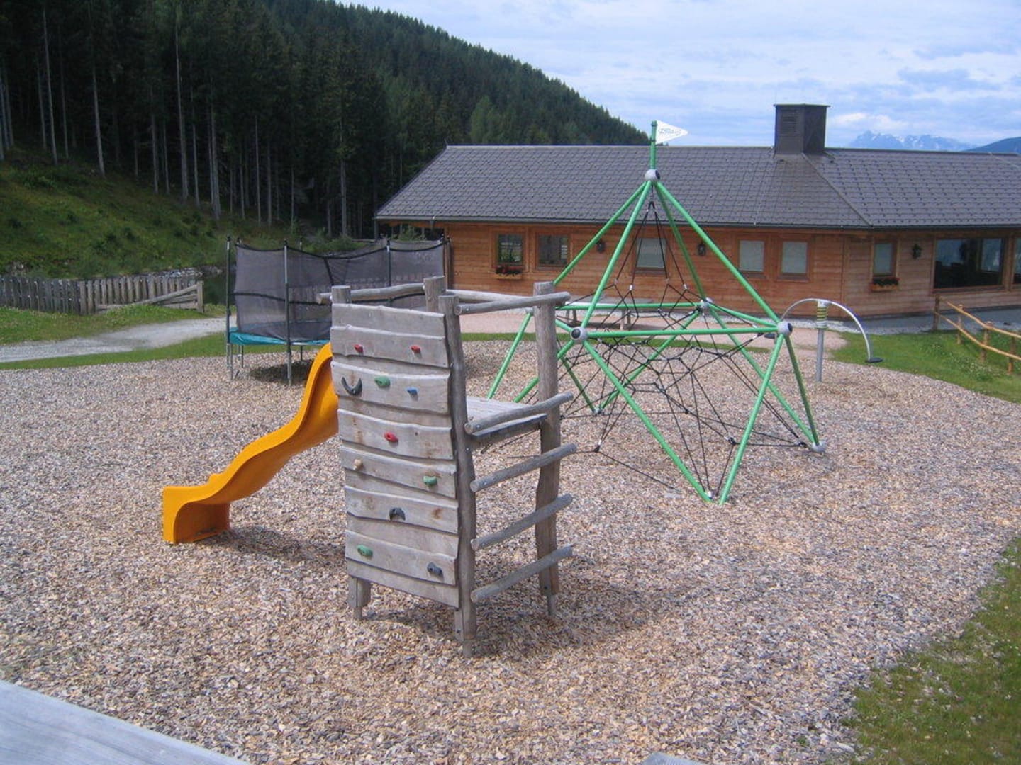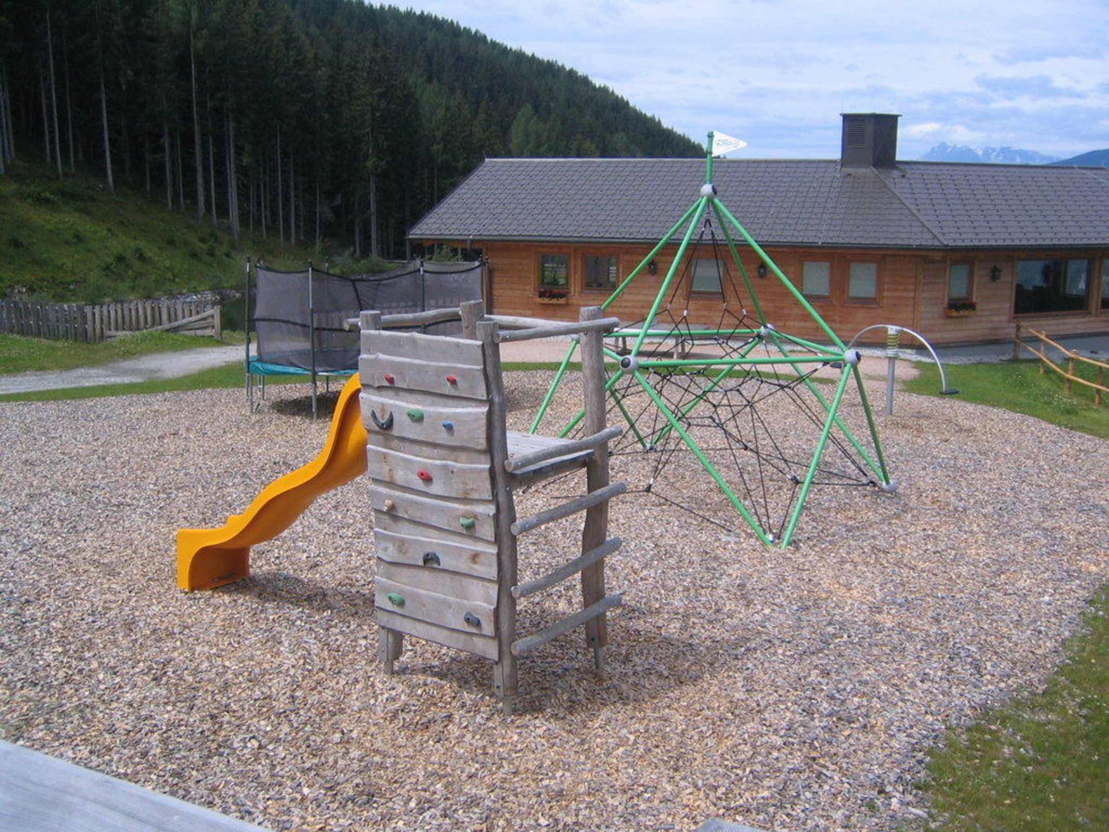 Der Spielplatz von der Terrasse aus