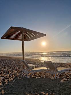 Schöne Sonnenuntergänge am Hotelstrand