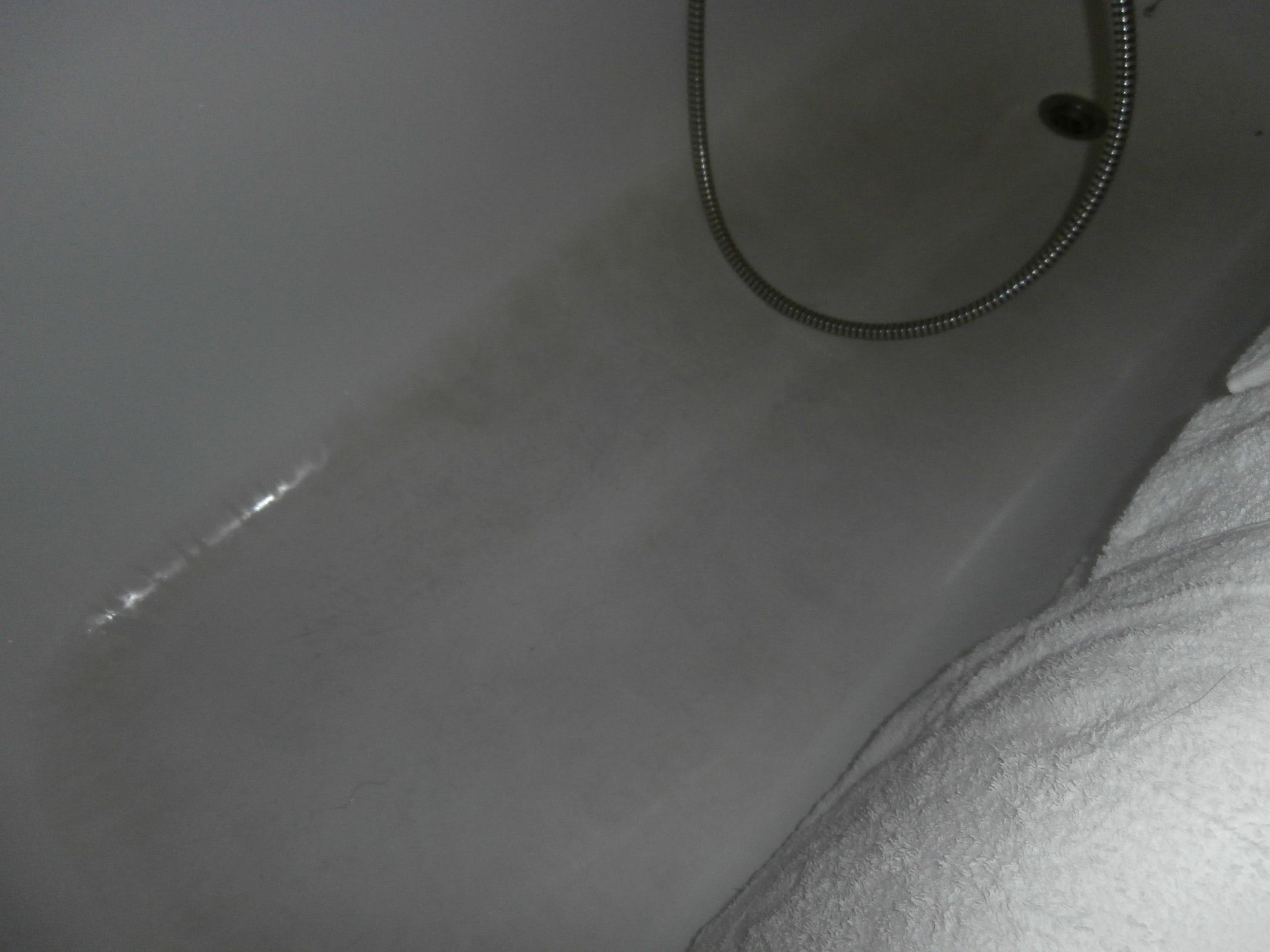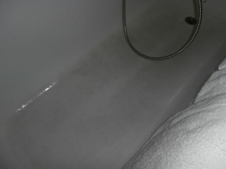 Badewanne aus anderer PerspektiveBoden der Badewanne war bräunlich und rauh , da fast keine Beschichtung mehr vorhanden. Aus anderem Blickwinkel.