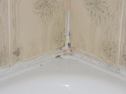 Schön verschimmelte Ecke der Dusche mit Haaren der Vorbewohner.....