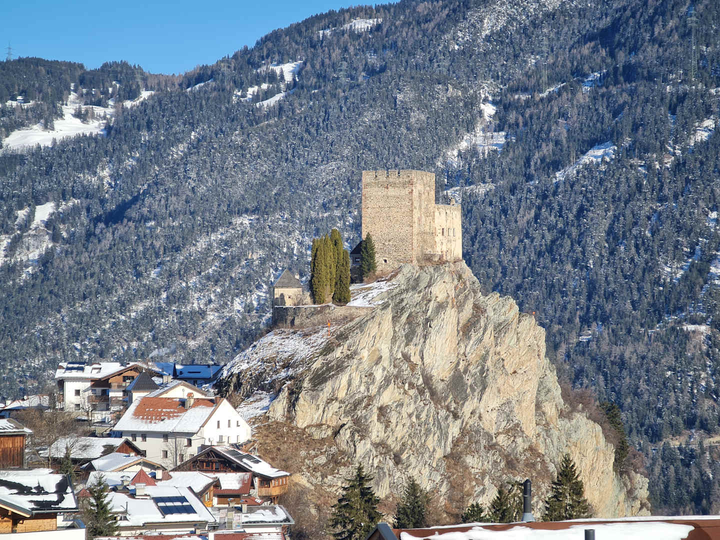 Blick auf die Burg Laudeck vom Balkon