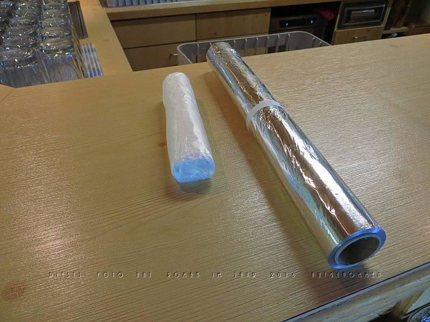 Eine Rolle Alufolie und eine Rolle Tragetasche