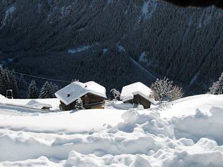 Alpengasthof Pichler - Winterwanderweg Bild 3 Der Winterwanderweg "Leben am Steilhang" beginnt am Alpengasthof Deutlich sichtbar ist der kalte Schatten, der noch im Tal ist