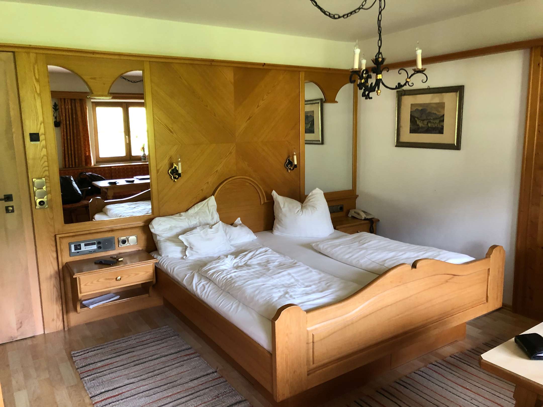 Zimmermein Einzelzimmer. Rustikal aber super gemütlich. Das Bad befand sich links, recht war eine Eckbank mit Blick nach draussen (Balkon).
