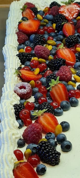 Riesengroße Torte, dekoriert wie ein Gemälde.