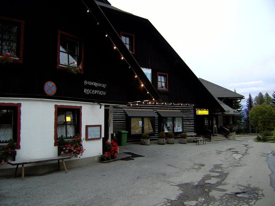 Hoteleingang Sonnleitn Kärnten / Nähe HermagorFrontansicht mit Rezeption und Zugang zur Gastronomie nebst Pool und Saunabereich
