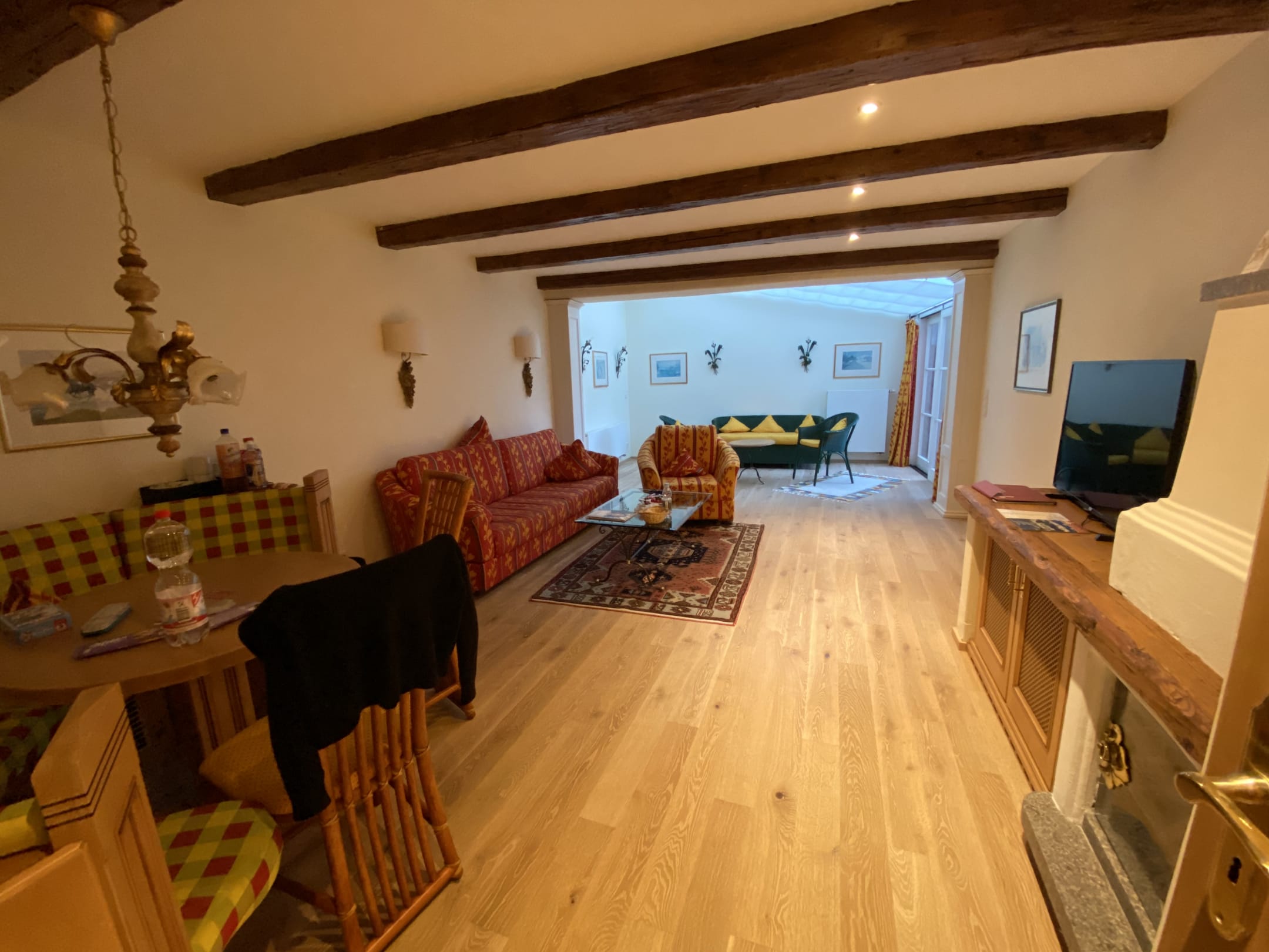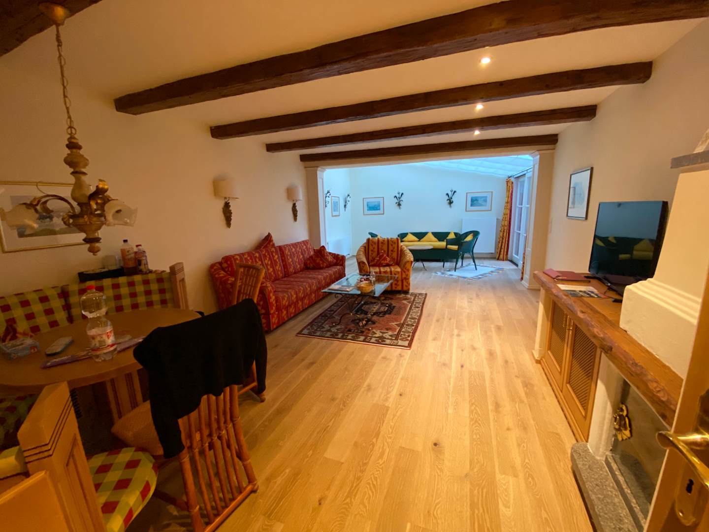Das Wohnzimmer mit Wintergarten und Essecke