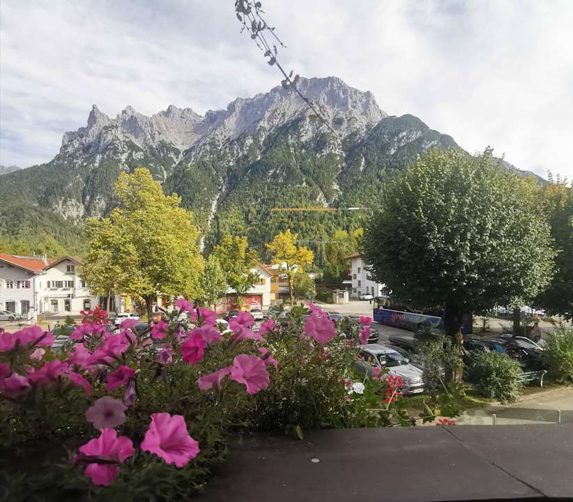 Blick aus unserem Hotelzimmer auf die westl. Karwendelspitze