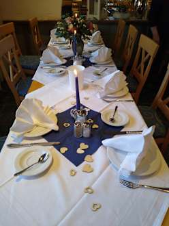 Auf Wunsch schön gedeckter Geburtstagstisch. Blumen wurden von uns selber besorgt.