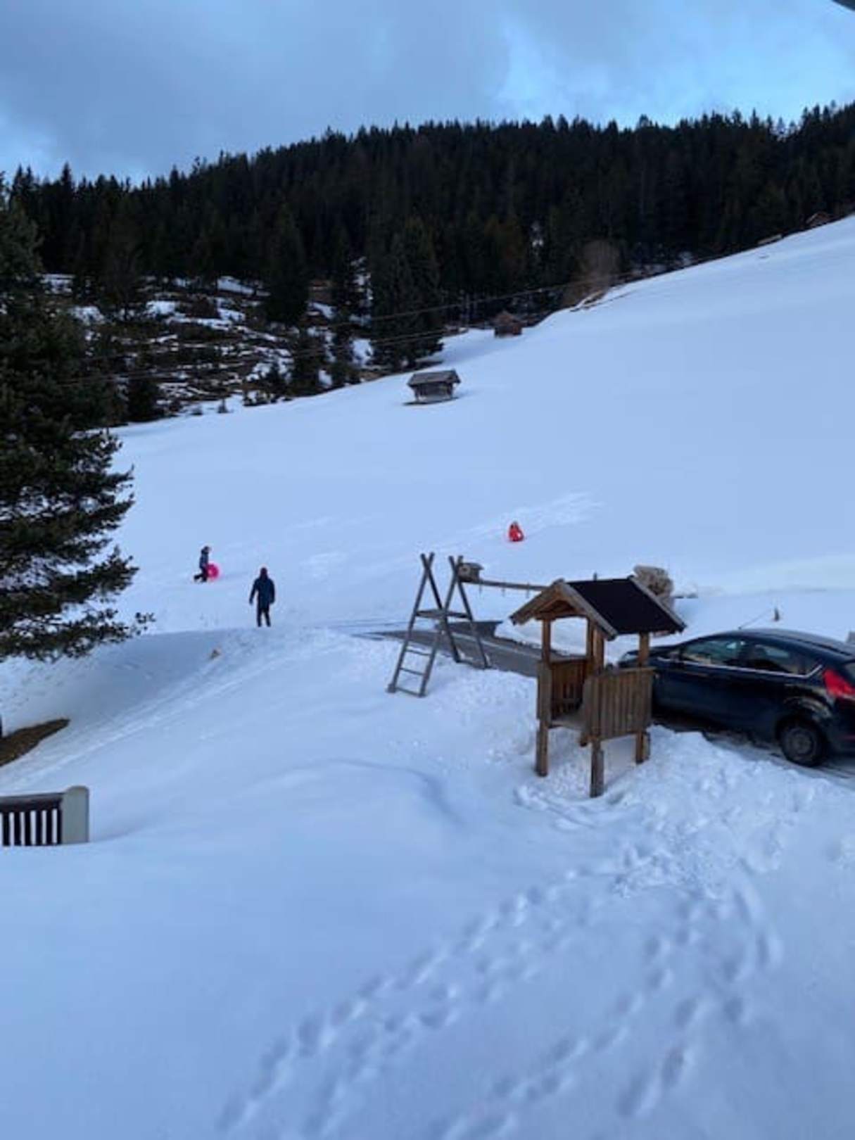 Rodeln neben dem Haus