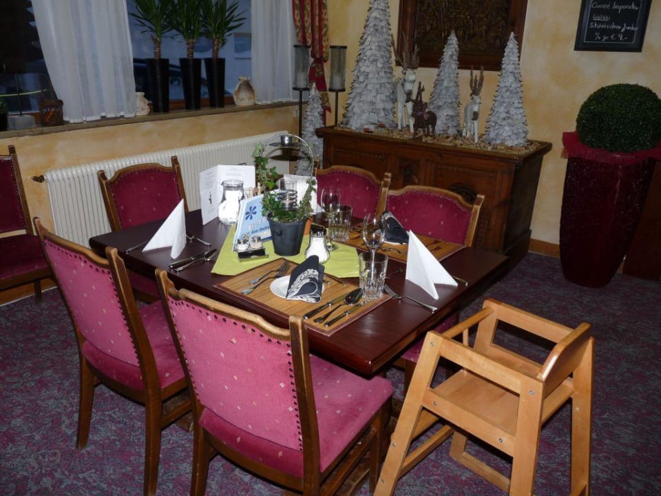 unser Tisch beim Frühstück und Abendessen