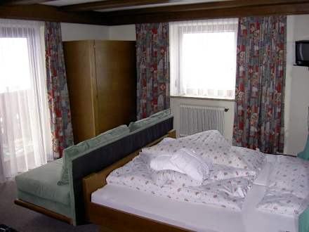 Hotel Ballunspitze, Galtür, Eckzimmer im Altbau, Ausstattung vorhanden aber nicht gerade neu, Beleuchtung hatte eher Hüttencharakter. Sehr positiv: Babyfon fest in jedem Zimmer auf das Schnurlose Telefon geschaltet!