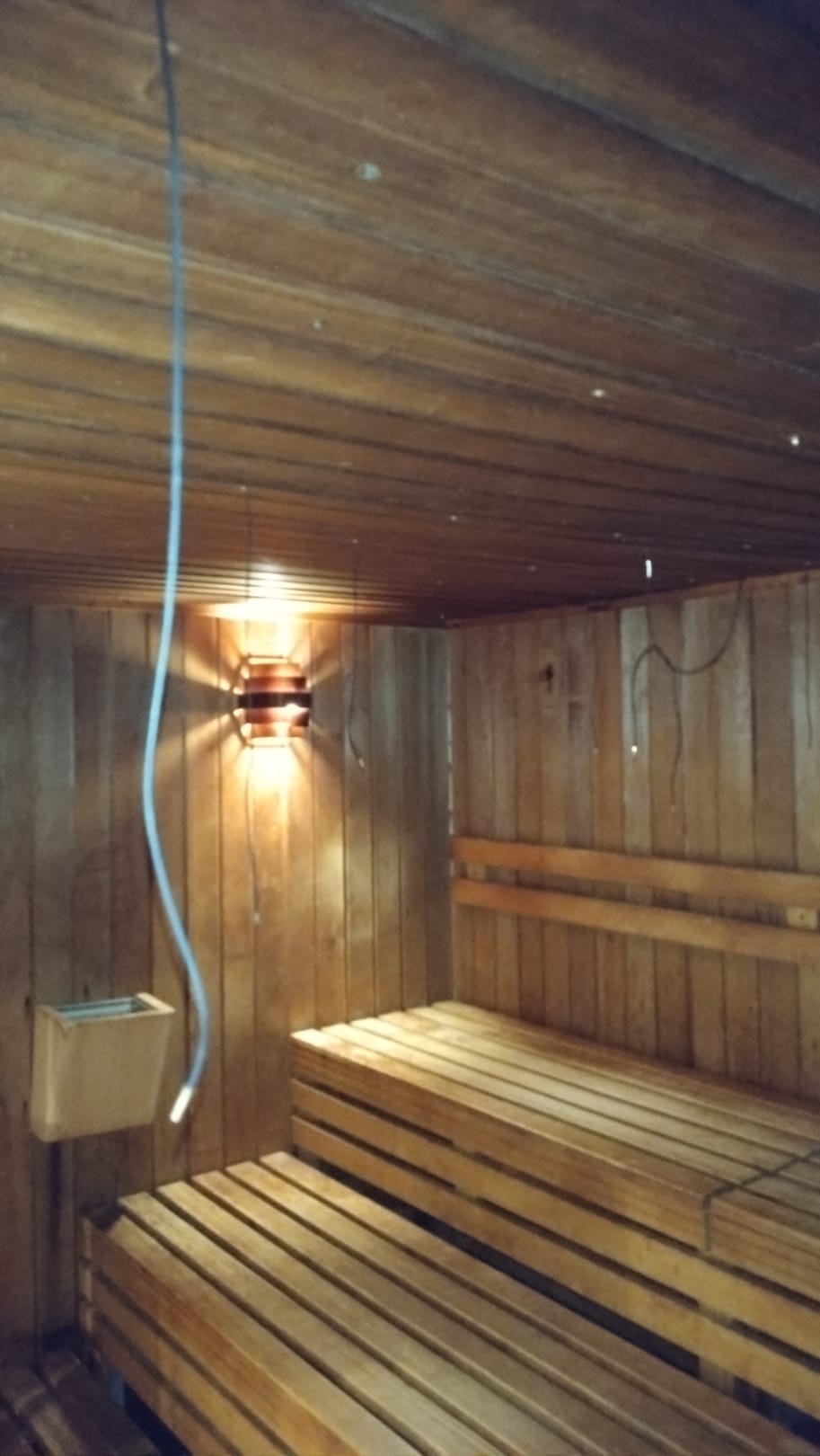 Hängende Beleuchtung in der Sauna. Horror