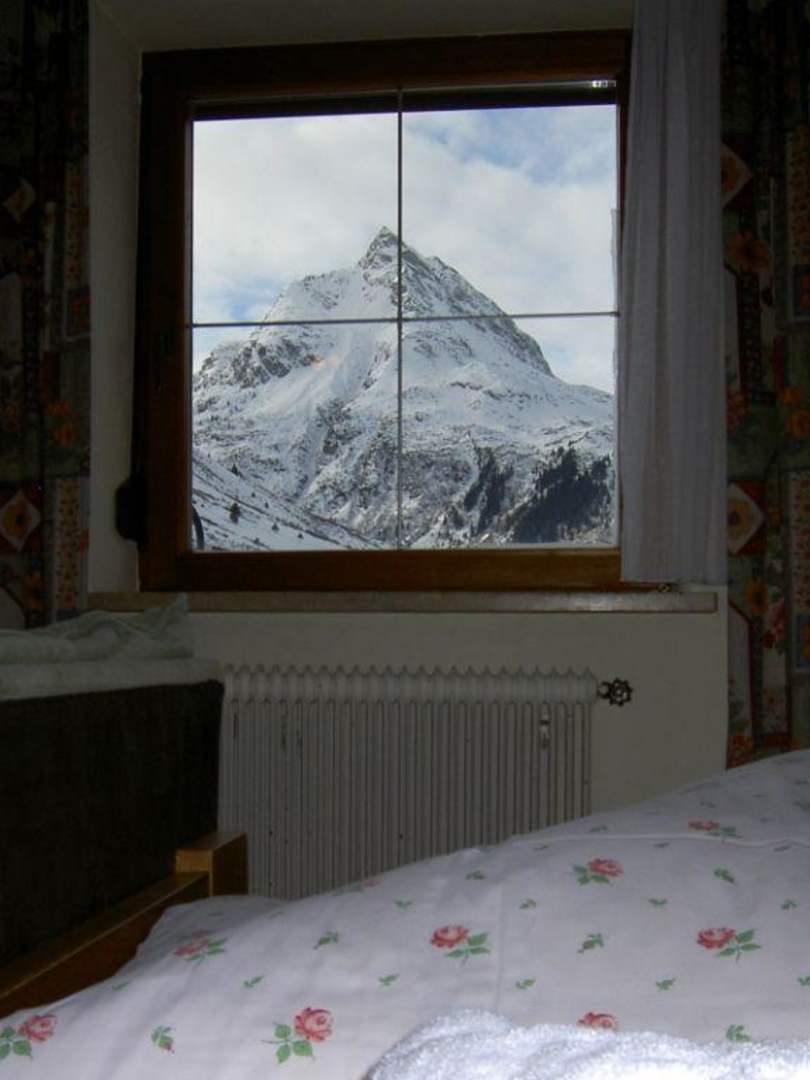 Galtür, Hotel Ballunspitze, Zimmer 102, Blick auf die Ballunspitze
