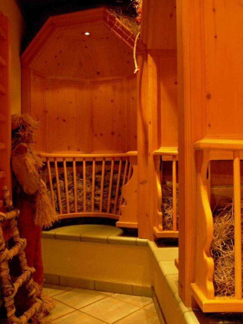 Galtür, Hotel Ballunspitze, Saunabereich: Ich gebs zu, ich habe nicht gefragt wofür es gut ist: hier kann man sich berührungsfrei ins Heu setzen... :-)