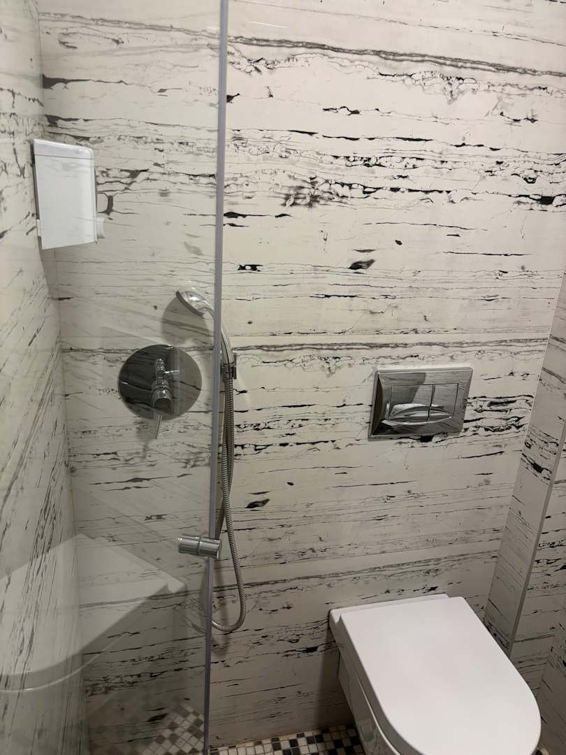 Das Bad in unserem Zimmer, zu klein, das Dusche und WC in einer Abtrennung waren.
