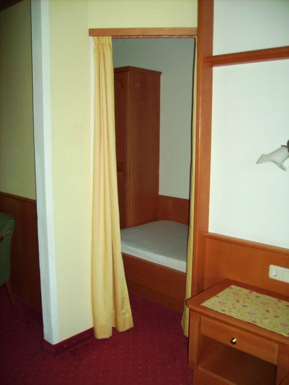 Zimmer 354Das zusätzliche Bett im Zimmer ist durch einen Vorhang getrennt vom Schlafzimmer. Dort steht auch ein extra Kleiderschrank.