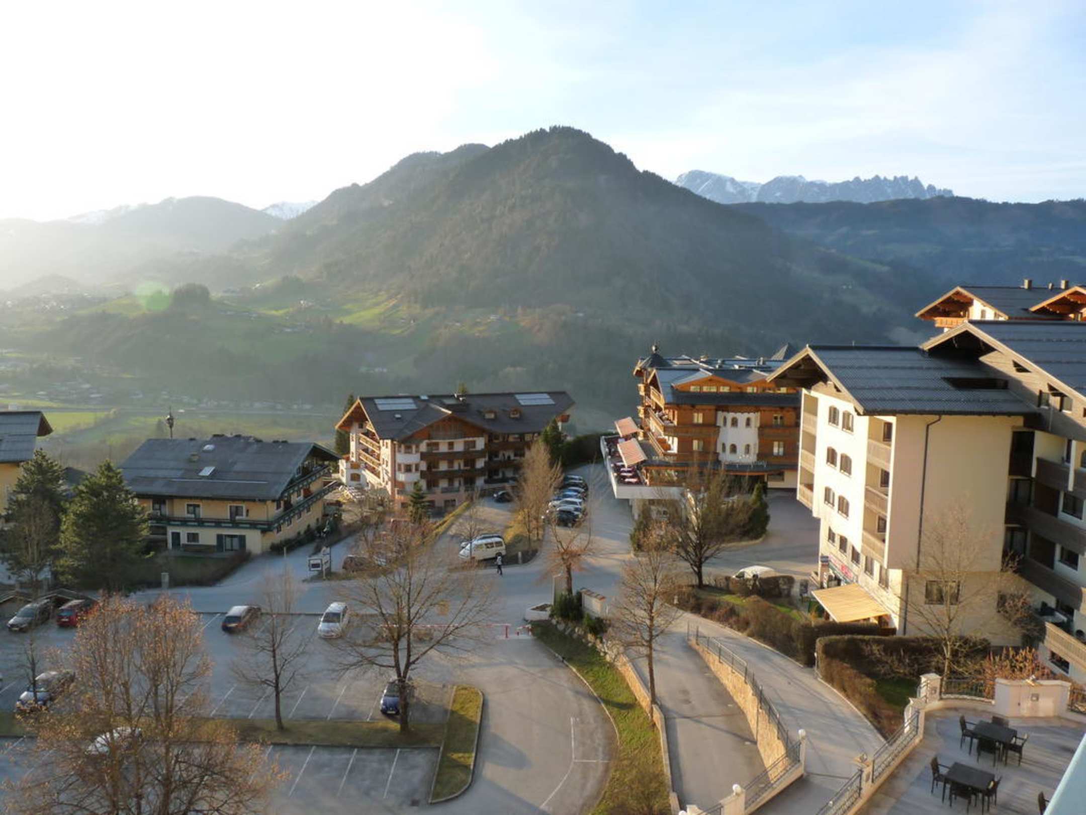 Ausblick von unserem BalkonMan sieht hier auf den Parkplatz, der im Sommer als Spielplatz verwendet wird. Dort wird geparkt, wenn man zum Lift will.