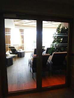Tür zum Ruheraum im Saunabereich
