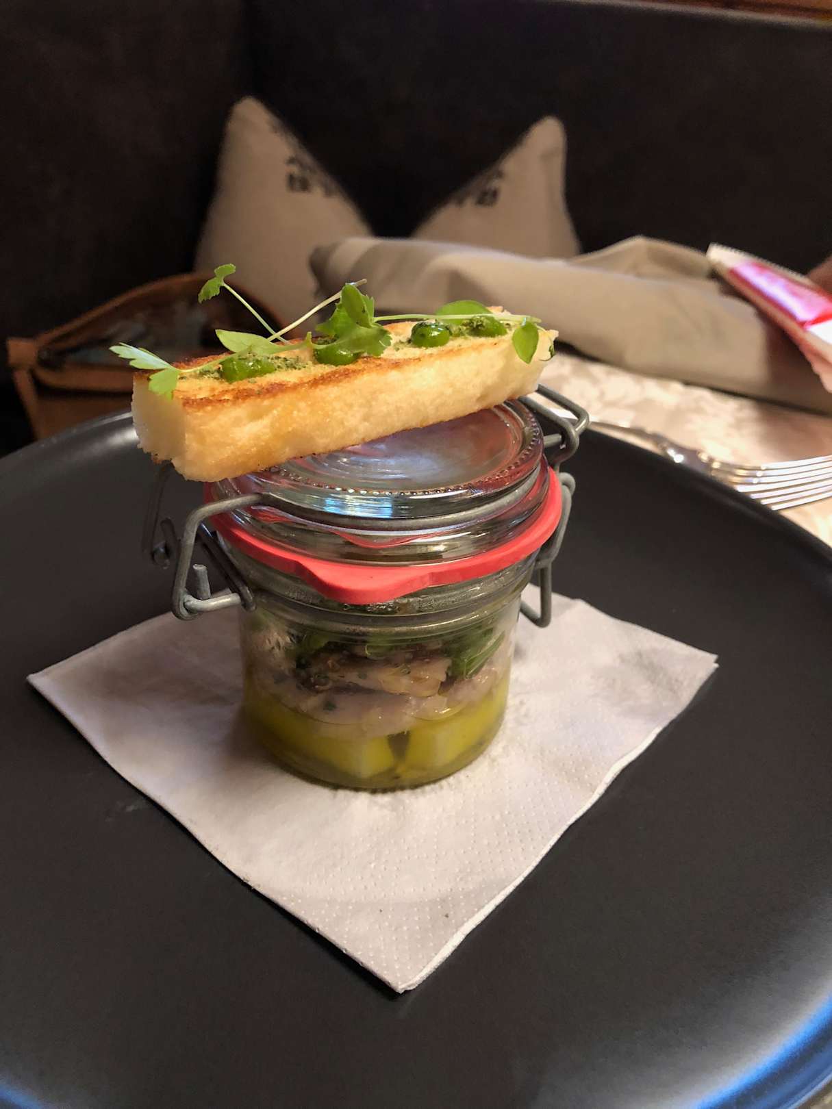 GastroThunfisch mit Kartoffeln und Olivenöl im Glas gegart (sorry an die Küchenmannschaft für die simple Beschreibung :-) )