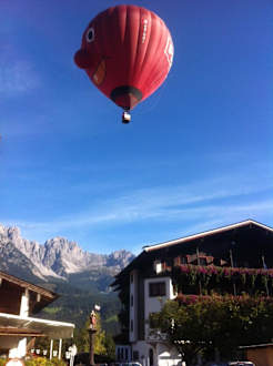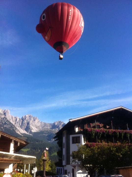 Ballon über Hotel Alte Post mit Blick auf den WilnBlick auf das Hotel Alte Post mit Blick auf den Wilden Kaiser