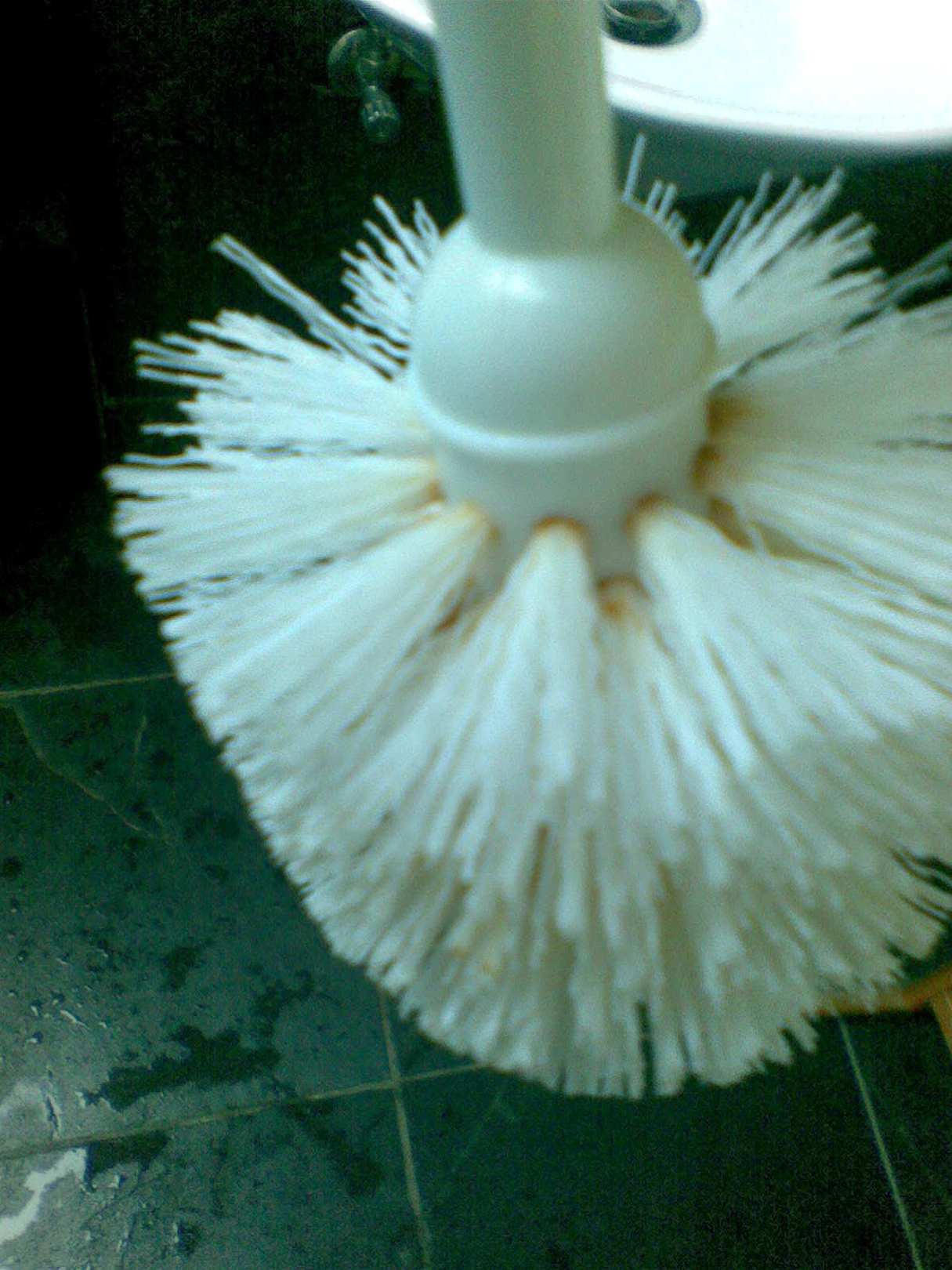 Verschmutzte Klobürste im Bad