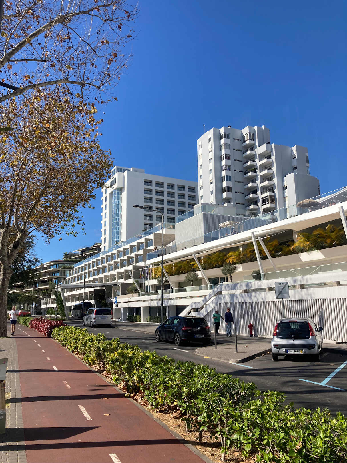 Außenansicht mit Radweg und Laufstrecke