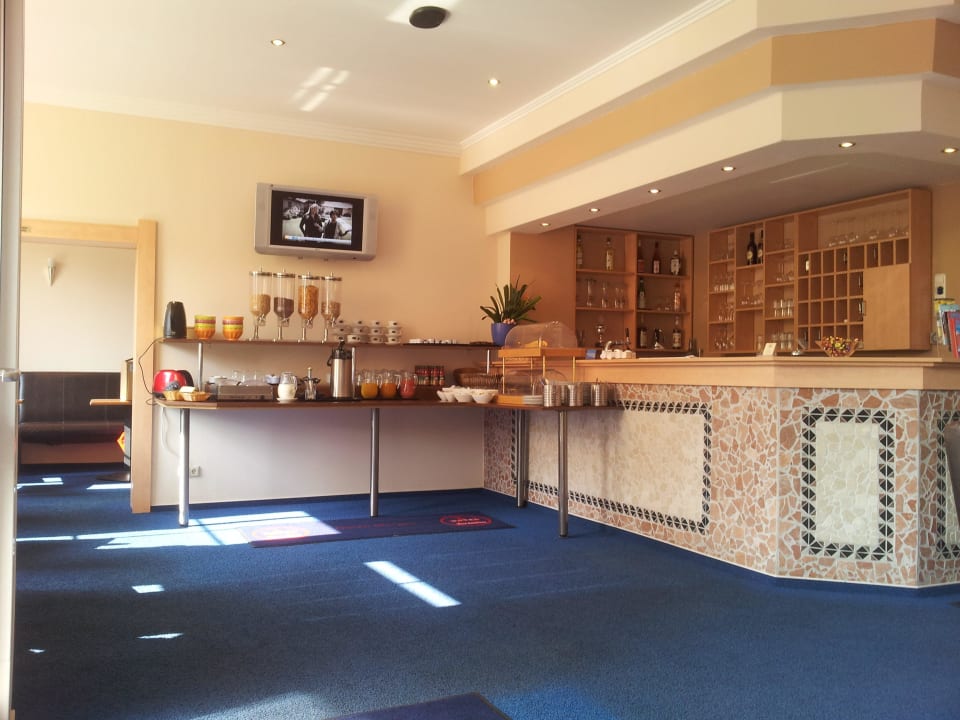 Rezeption und Frühstücksbüffet