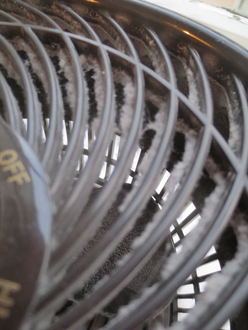 Schmutzschicht am Ventilatorgehäuse