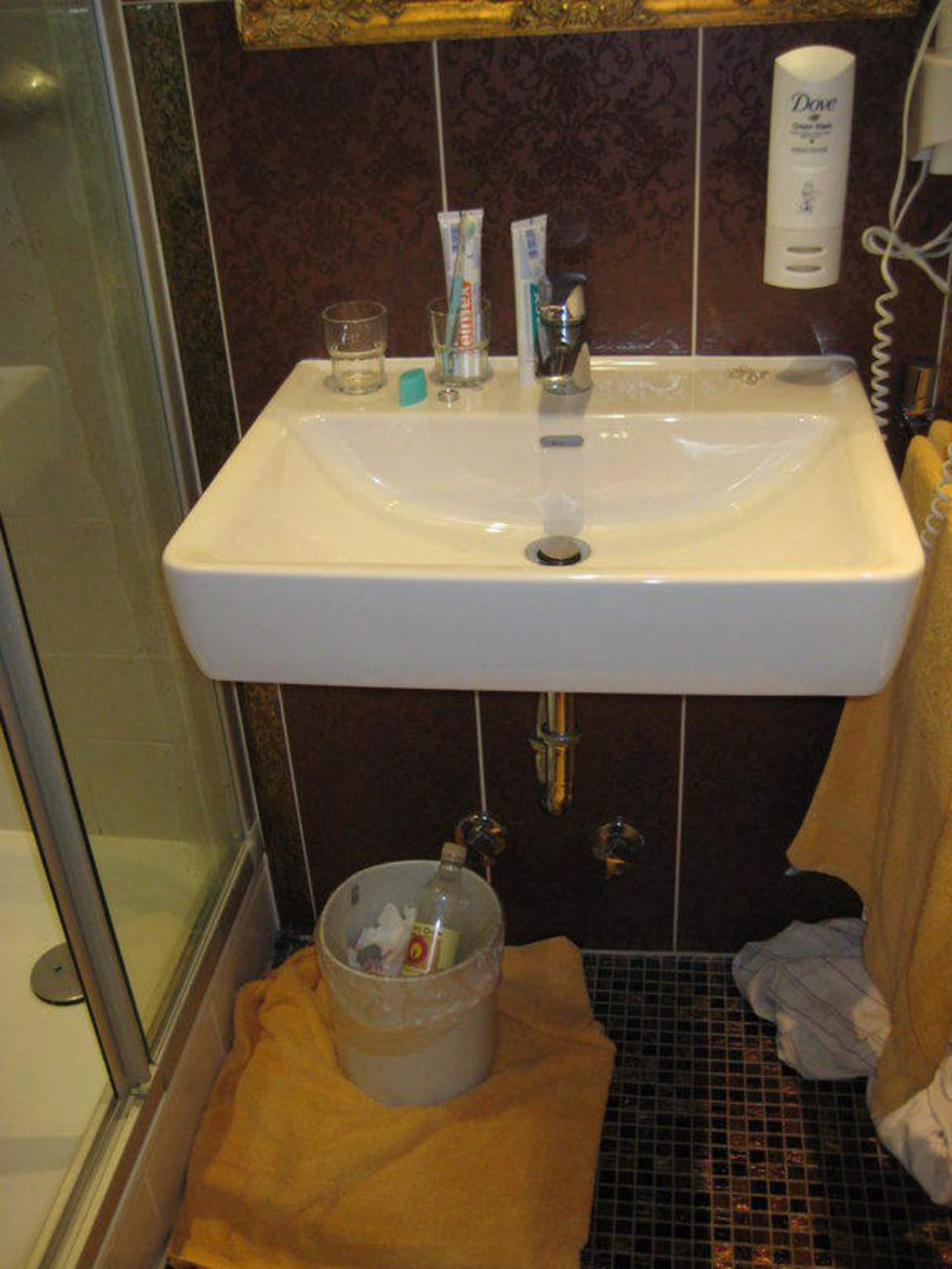 Handtuch auf der Erde, da Wasser beim Duschen ausläuft