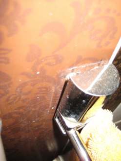 der schmutzige Handtuchhalter ist mehr als wackelig angebracht