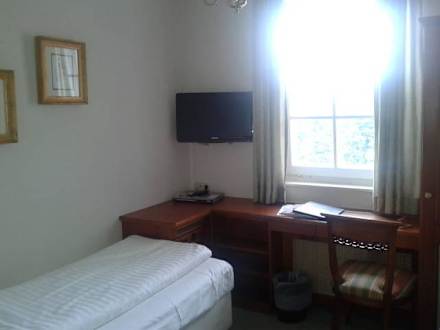 Bett, Fernseher und Ausblick Einzelzimmer