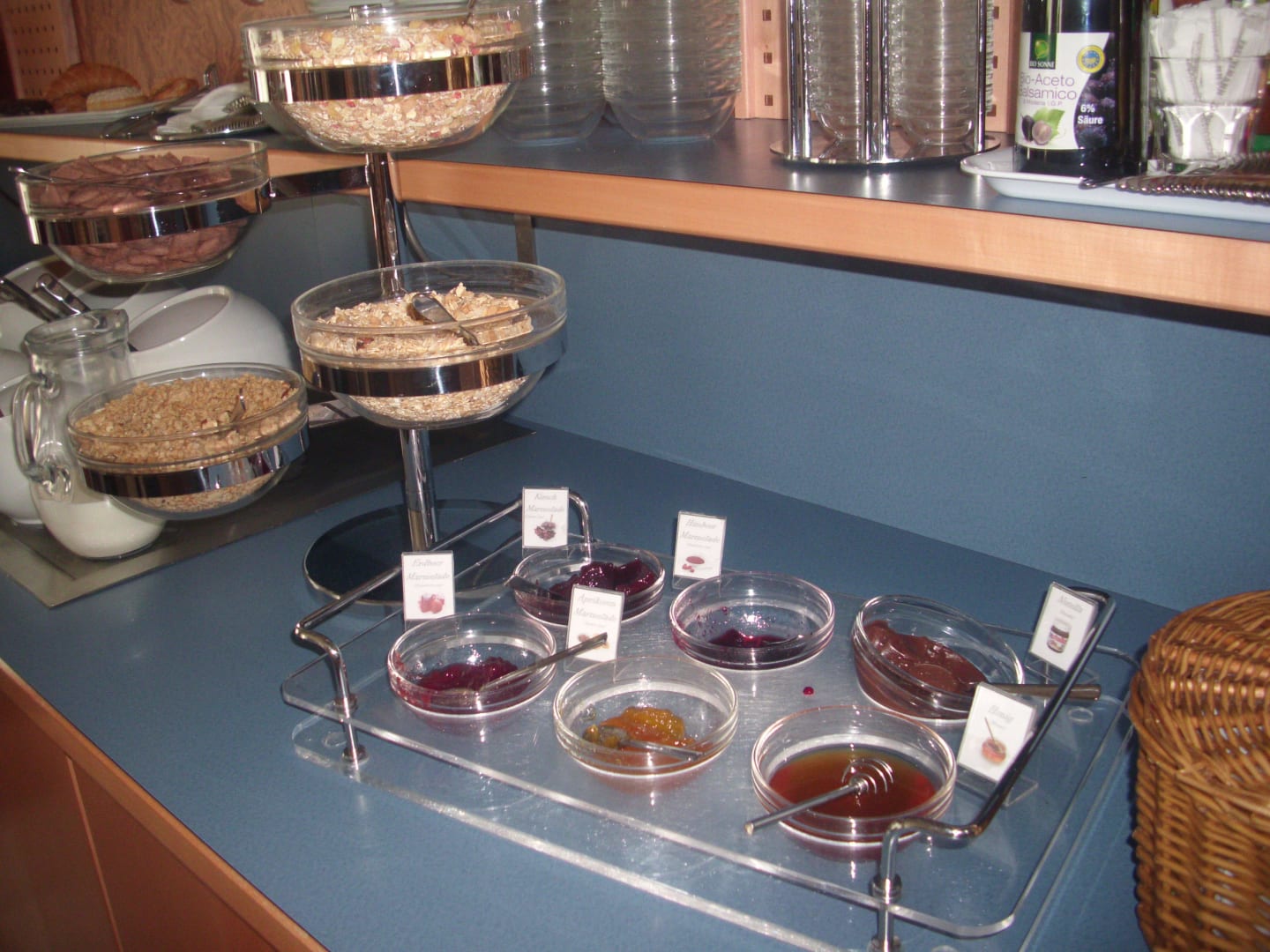Frühstücksbüffet. Hier: Marmelade und Müsliauswahl