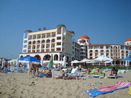 Blick vom Strand auf das Hotel