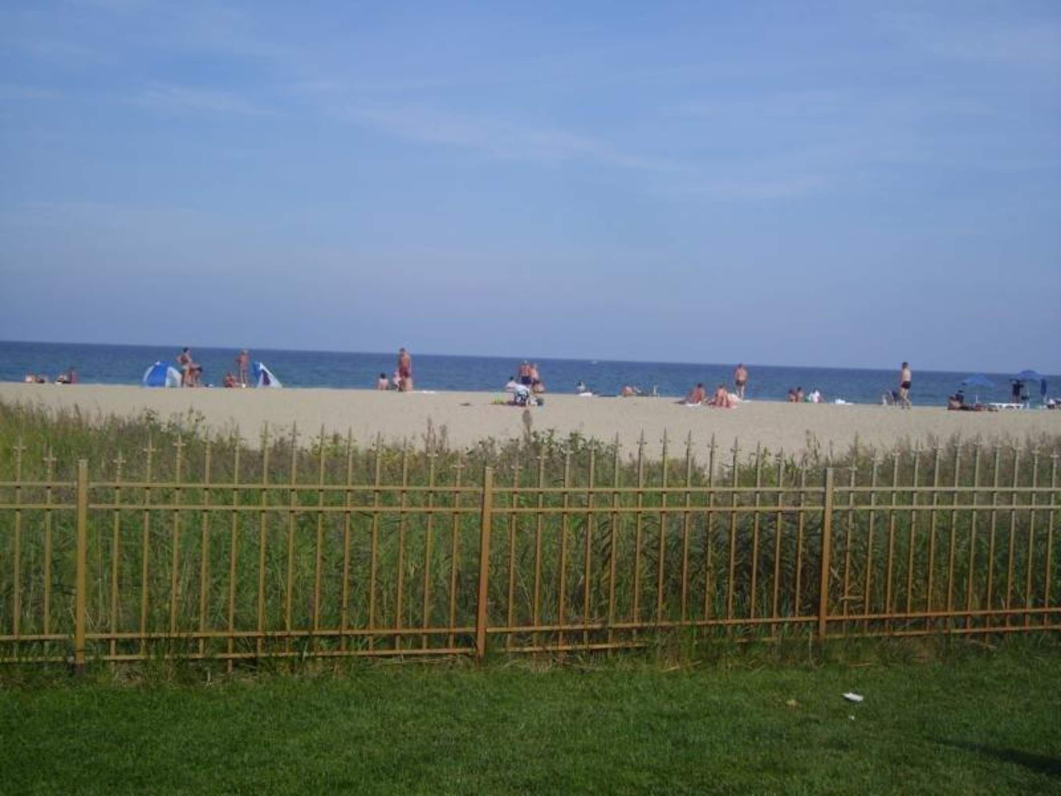 Blick von einer Poolliege auf den Strand