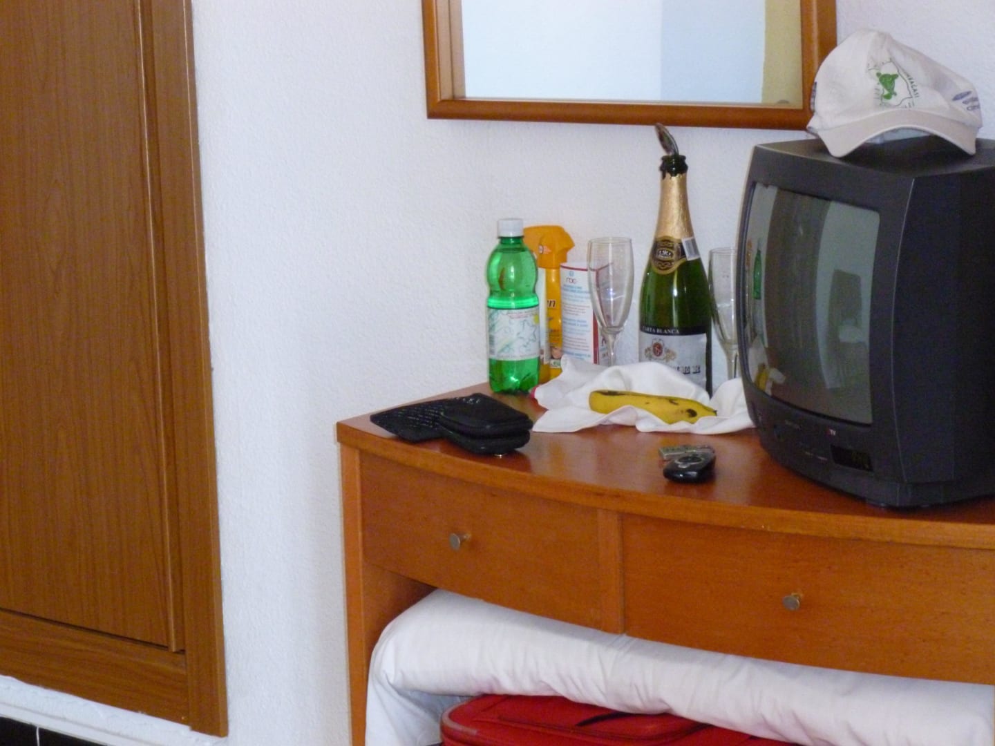 Schreibtisch m. TV & Sekt