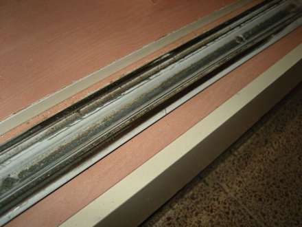 KleiderschrankFührungsschiene der Türen. Wurde wohl noch nie gereinigt.