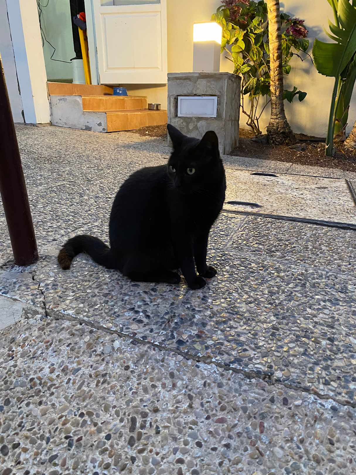 Das kleine, schwarze Kätzchen das sich über ein wenig Futter freut