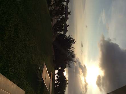 Sonnenaufgang, Blick von der Terrasse Richtung Pool
