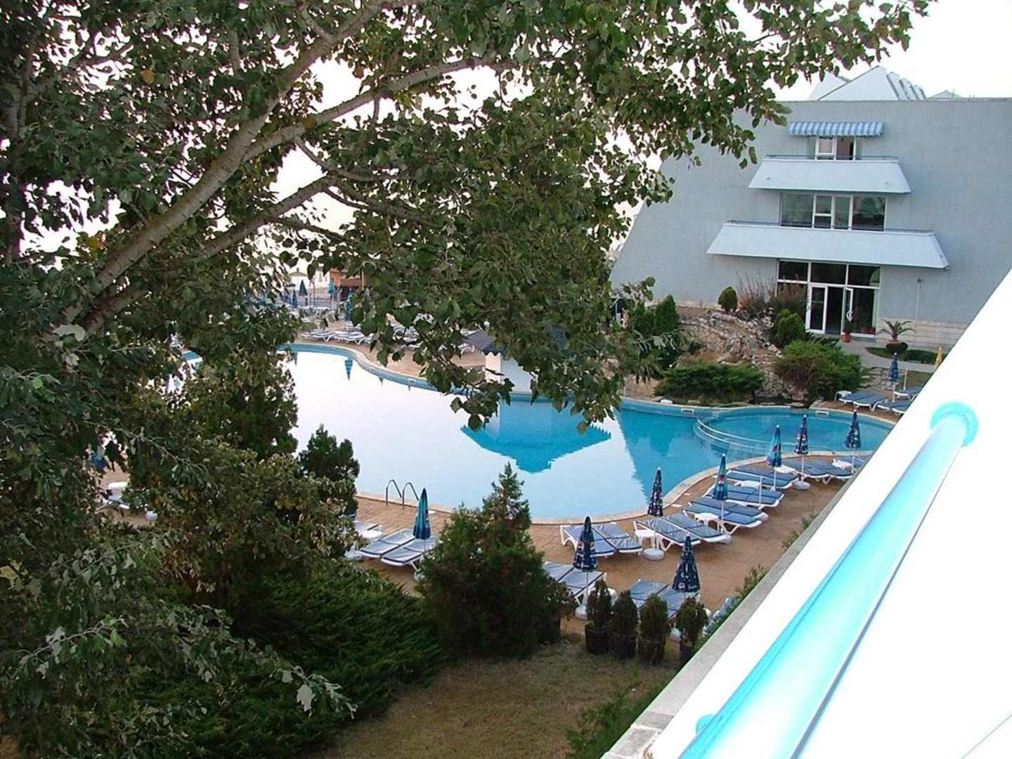 Zimmerblick PoolAusblick aus dem Zimmer A310 auf die Poolanlage am frühen Morgen.