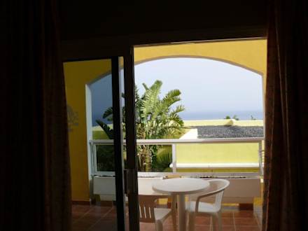 Blick vom Hotelzimmer auf Anlage und Meer