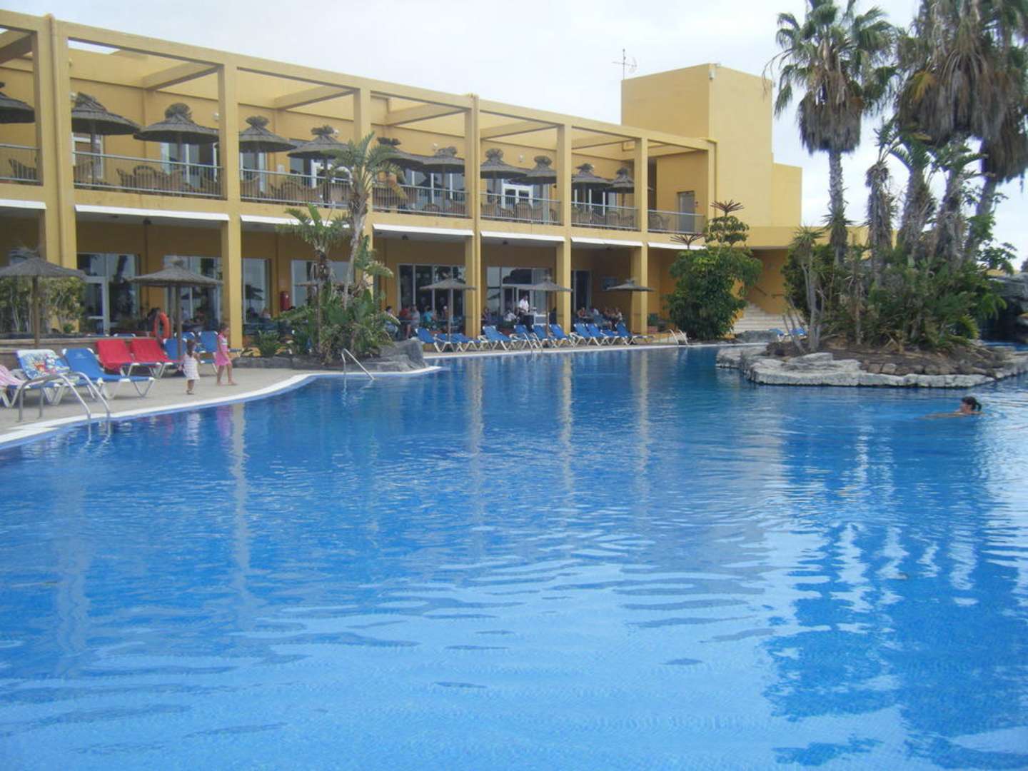 Der Pool mit Sicht auf das Restaurant