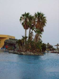 Der Hauptpool mit einer Palmeninsel in der Mitte