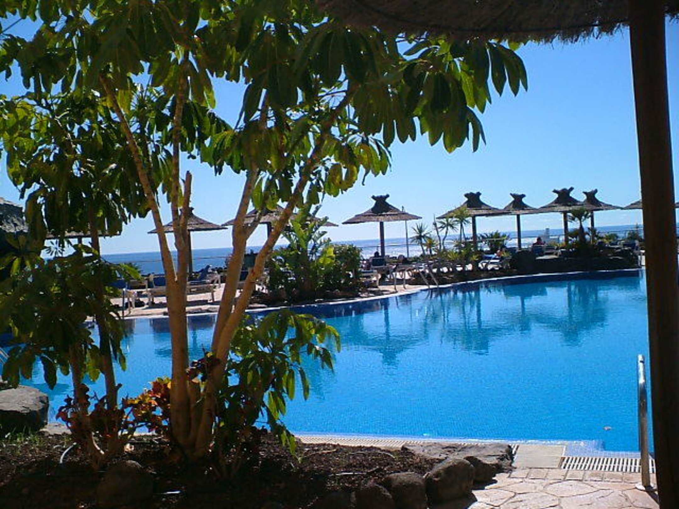 Beim EssenDieses Foto wurde beim Essen gemacht und zeigt die Poolanlage mit dem Atlantik im Hintergrund