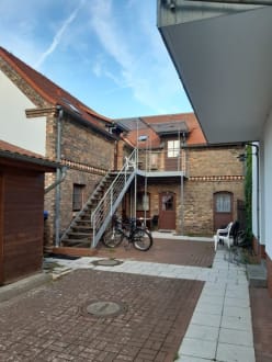 Eingang zu den Zimmern im Nebengebäude.