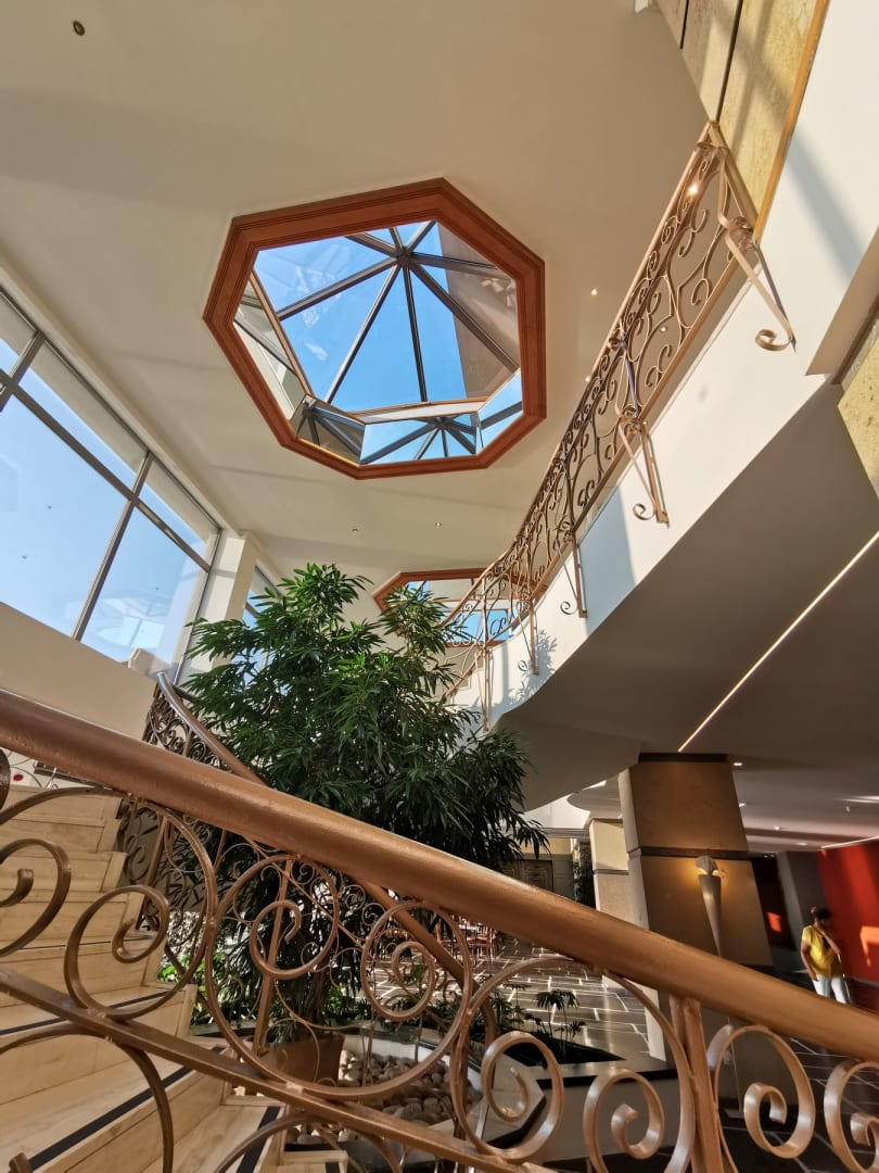 Treppe ins Erdgeschoss zur Lobby