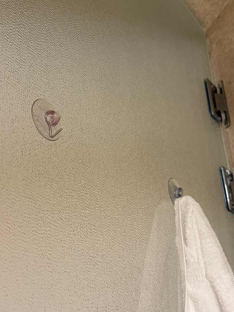 ZimmerEs gibt an der Tür im Badezimmer nur diese beiden Haken. Die Badezimmer Tür ist weder schließbar noch abschließbar. Privatsphäre gleich null.