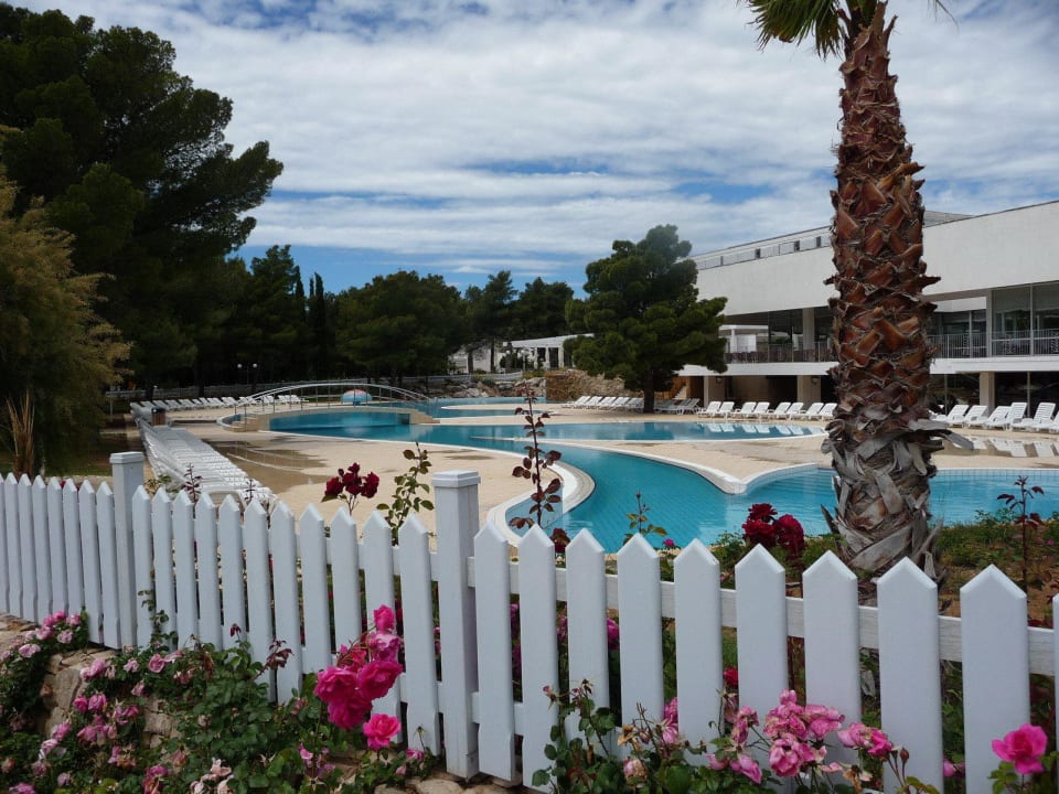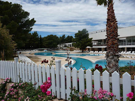 Die Poolanlage vom Strandweg gesehen