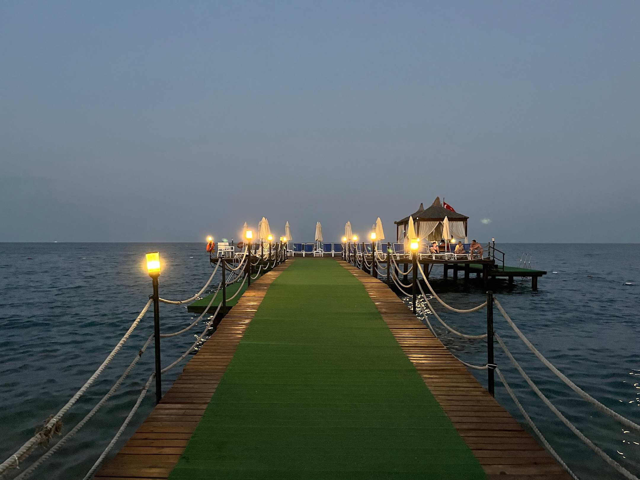 Steg bei Nacht - hier kann man tagsüber liegen und ins Meer tauchen